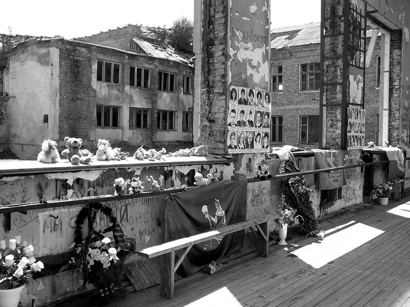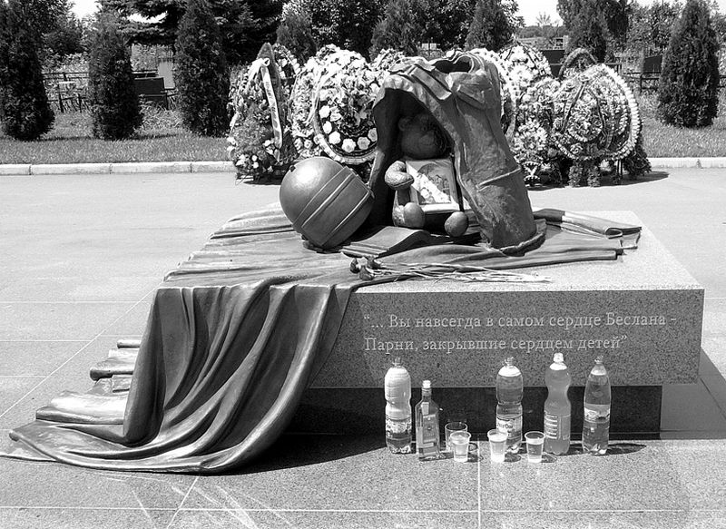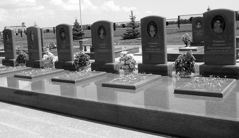 Первая полосаО газете и сайтеРубрикиБизнесБлицБюджетВ прокуратуреВопрос психологуГорода-деревни-мегаполисыГородская дума: Суть событийДайте жалобную книгуДети войныЖильё моёЗаписки отчаянной мамочкиЗнай нашихИспытано на себеИстория с Еленой МавлихановойКолонка юристаКриминфоКрупным планомКультураМалоэтажное строительствоНепреклонные годыО быломОдин день из жизни…Письма-звонки-визитыПривет с большой землиПутешествияРодителиСаров: инструкция по применениюСлово депутатуСлово за словоСпортСпроси священникаТвори доброФемины и политикаФотоконкурсХорошо сказаноЧтивоШколаЭкономика с Дмитрием ФайковымЯзык помощиНомера...архив...26 ноября 2014 (48)03 декабря 2014 (49)10 декабря 2014 (50)Слово — читателюКнига отзывовПоследние обсуждения | Отпустите нас на небо2009 избранноеТрагедии в Беслане — пять лет Они взлетели и парят, краешками крыльев зацепившись за руки женщин, присев на ветки дерева. Маленькие ангелы, можно различить не только их возраст, но выражение лиц. Одни вот-вот оторвутся и взлетят, другие доверчиво льнут к ангелам постарше. Этот памятник жертвам трагедии в Беслане стоит на кладбище, которое носит название «Город ангелов». Это действительно целый город. Рядами мраморные памятники одинакового кирпичного цвета. Кажется, они уходят за горизонт, так их много. Более трехсот надгробий с фотографиями улыбающихся детишек, их родственников, учительниц. Чуть в стороне — мемориал, посвященный погибшим бойцам спецназа. На плите, покрытой тканью, — защитный жилет и каска. Внутри жилета спрятался игрушечный мишка, сидящий перед раскрытой книжкой. В лапах игрушки — икона. На памятнике надпись: «…Вы навсегда в самом сердце Беслана — Парни, закрывшие сердцем детей». Перед ним — наполненные пластиковые стаканчики, бутылки с водой, бутылка водки. Это очень жаркий день. Группа мужчин присела за столик около памятника. Рядом одинокая сухонькая старушка обмывает надгробие водой. Это бабушка Стелы и Георгия Гузмиевых, оба ее внука-погодка погибли 3 сентября 2004 года. Возле каждой надгробной плиты обязательно цветы и бутылки воды. Несколько емкостей выстроились перед памятником. Люди постоянно молили о воде, их мучила жажда. У многих могил — игрушки. Куклы, плюшевые мишки, самолетики, машинки. У Рады Салказановой три больших пупса, у Юли Рудик — изящная куколка в шляпке, у Саши Баландина — целый сонм маленьких ангелочков, у Заурбека Гутнова — почти «настоящий» самосвал. Шесть памятников рядом: пять сестренок и братик — Люба, Алла, Борас, Альбина, Лариса и Дзерасса Тотиевы. Это дети двух братьев Тотиевых, которые потеряли в один день всех своих детей. Вот мама Эмма Джибилова рядом с двумя своими детьми, Борисом и Аланой. У Карины Туаевой на памятнике яркая красная лента с белыми буквами: «Выпускник 2009». У папы с сыном стихотворная перекличка на памятниках: «Сынок, не бойся вечных снов. Раз жизни сон не долго снился, допей здесь папину любовь, коль материнской не напился». Олег Джимиев смотрит с портрета внимательно, 15 июля ему исполнилось бы 20 лет. Недалеко от входа — Диана Карсанова, Альберт Ваниев. Молодые учителя школы № 1. В городе тихо, в городе много воды. Ее можно попить из фонтанчика, она журчит из шланга. Пить не хочется. Школу № 1 отыскать не трудно. Рядом с ней — свежеотремонтированные кирпичные дома. Таких в Беслане немного, в о